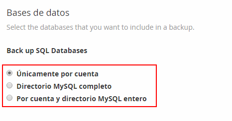 Vuelve a ventana anterior y sigue configurando la copia seleccionando las bases de datos que quieres incluir.