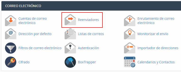 En la pantalla principal haz clic en el enlace "Reenviadores" situado dentro de la sección "Correo electrónico".