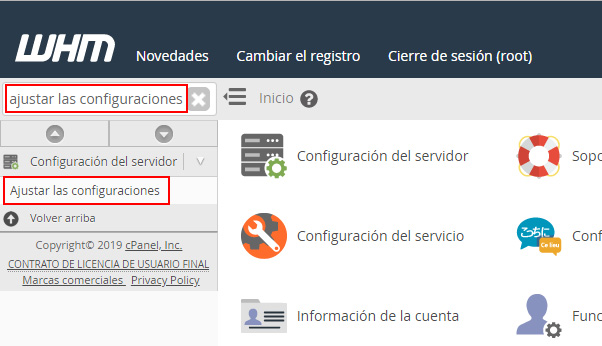 Busca "ajustar las configuraciones" en el buscador principal y haz clic en la opción Ajustar las configuraciones dentro de la sección Configuración del servidor.
