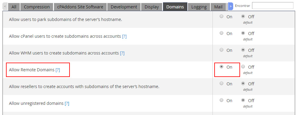 Tan solo tienes que permitir añadir dominios remotos en el WHM para solucionarlo.