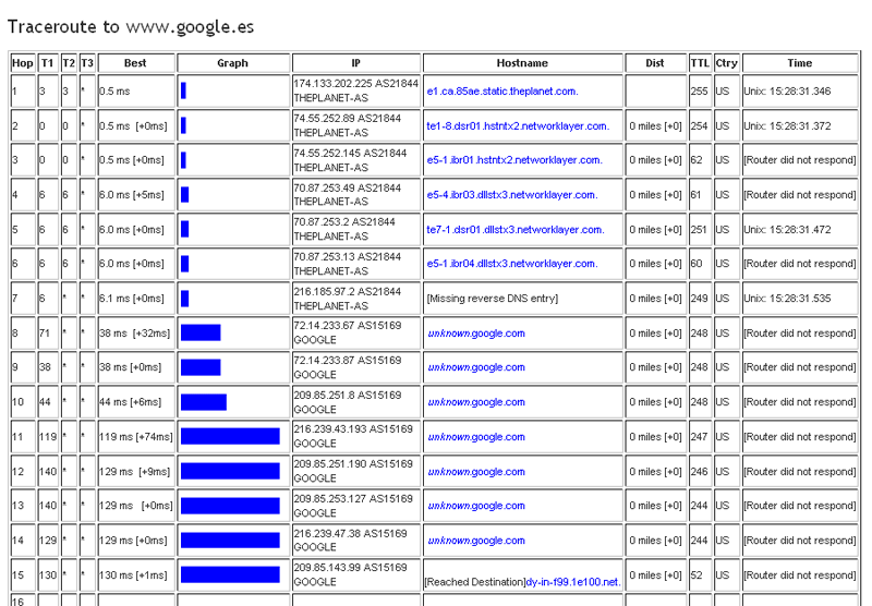 Uno de los servicios que ofrece dnsstuff es un traceroute online a través de su página, su uso es muy sencillo, tan solo con poner la dirección ip o el nombre del dominio te traza la ruta desde el host hasta la máquina destino para averiguar los saltos o latencia durante el envío de paquetes.