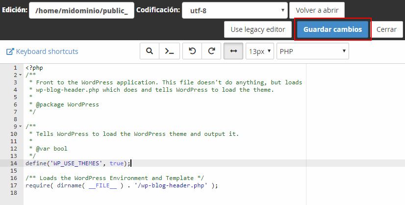 De esta forma puedes realizar cambios rápidos en los ficheros alojados en tu dominio.